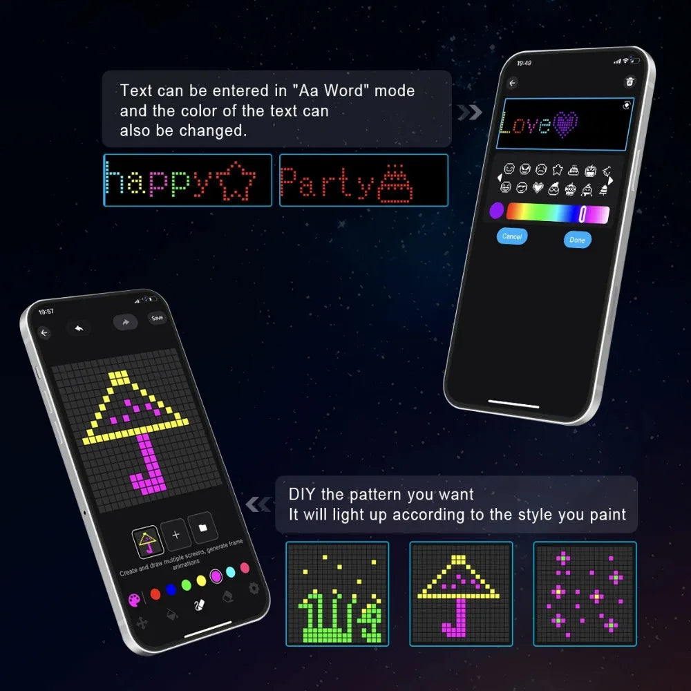 Holiday-Themed Colors & Modes – Easily switch between classic Christmas reds and greens, warm golden glows, snowy whites, or any design that comes to your mind.